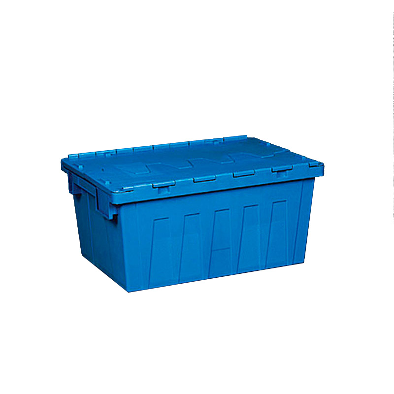 1. 物流箱為可插式、帶連體外翻箱蓋;把手搬運(yùn)舒適,空箱套入時(shí),把手在外。